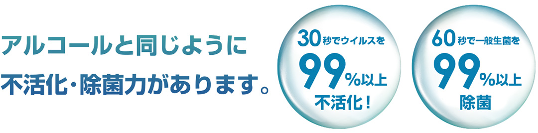 アルコールや塩素系除菌剤のような刺激臭はありませんので、それによる頭痛が起こることもございません。